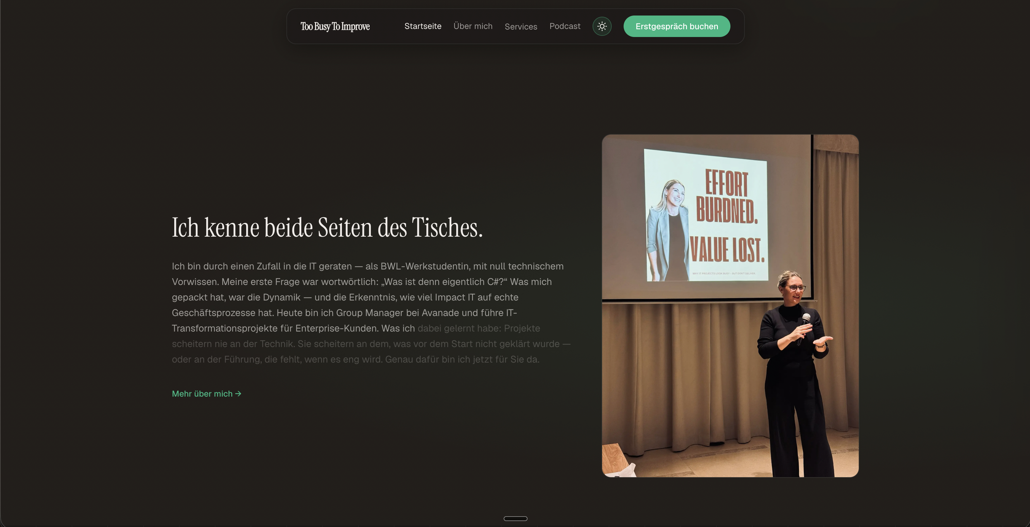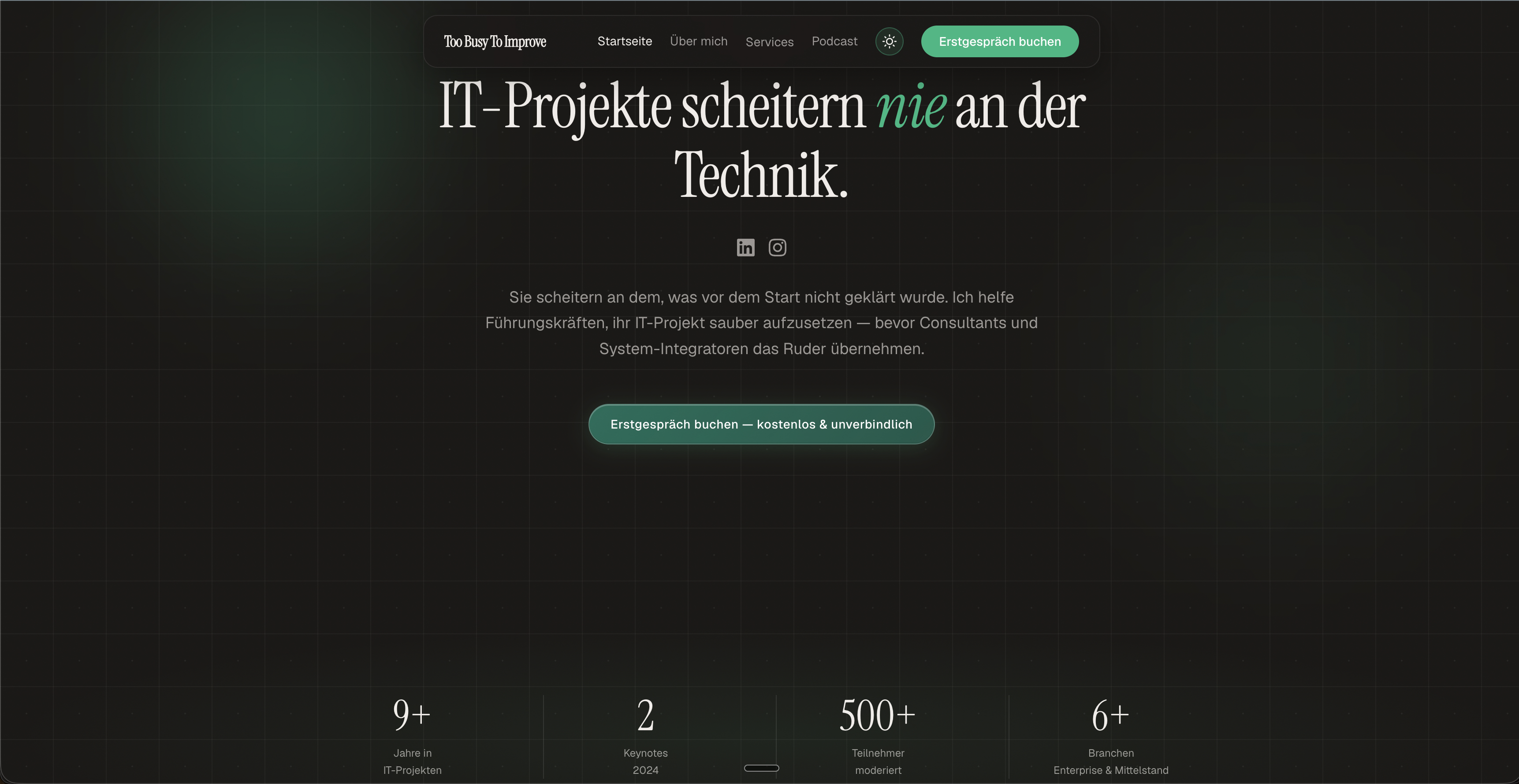 A personal brand website for a tech consultant, featuring animated gradient blobs, scroll-driven reveals, and warm editorial design that brings personality to the digital stage.