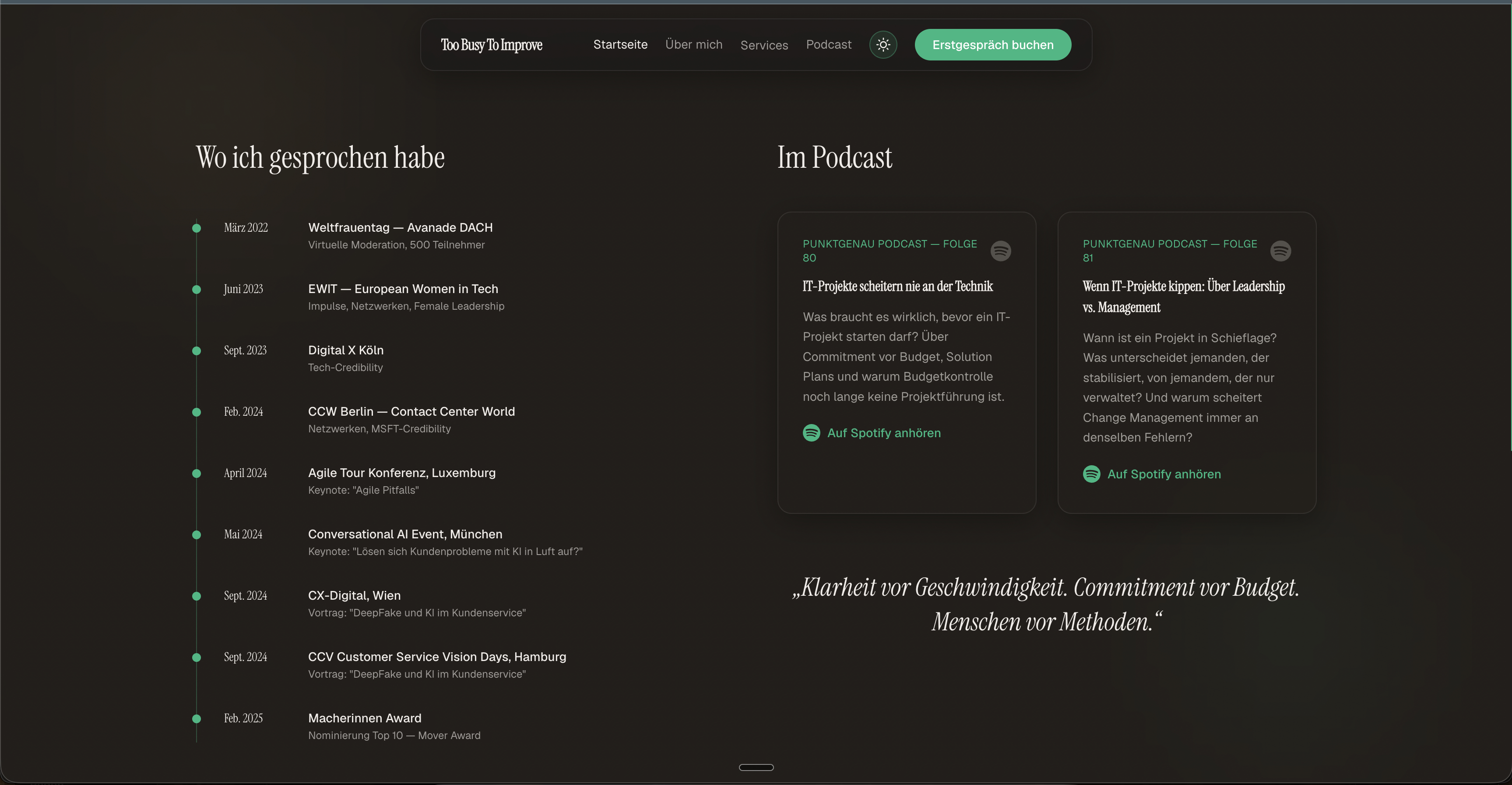 A modern political website for an SPD district council speaker in Bremen, featuring scroll-driven animations, dark mode, bilingual support, and a markdown-based news system.